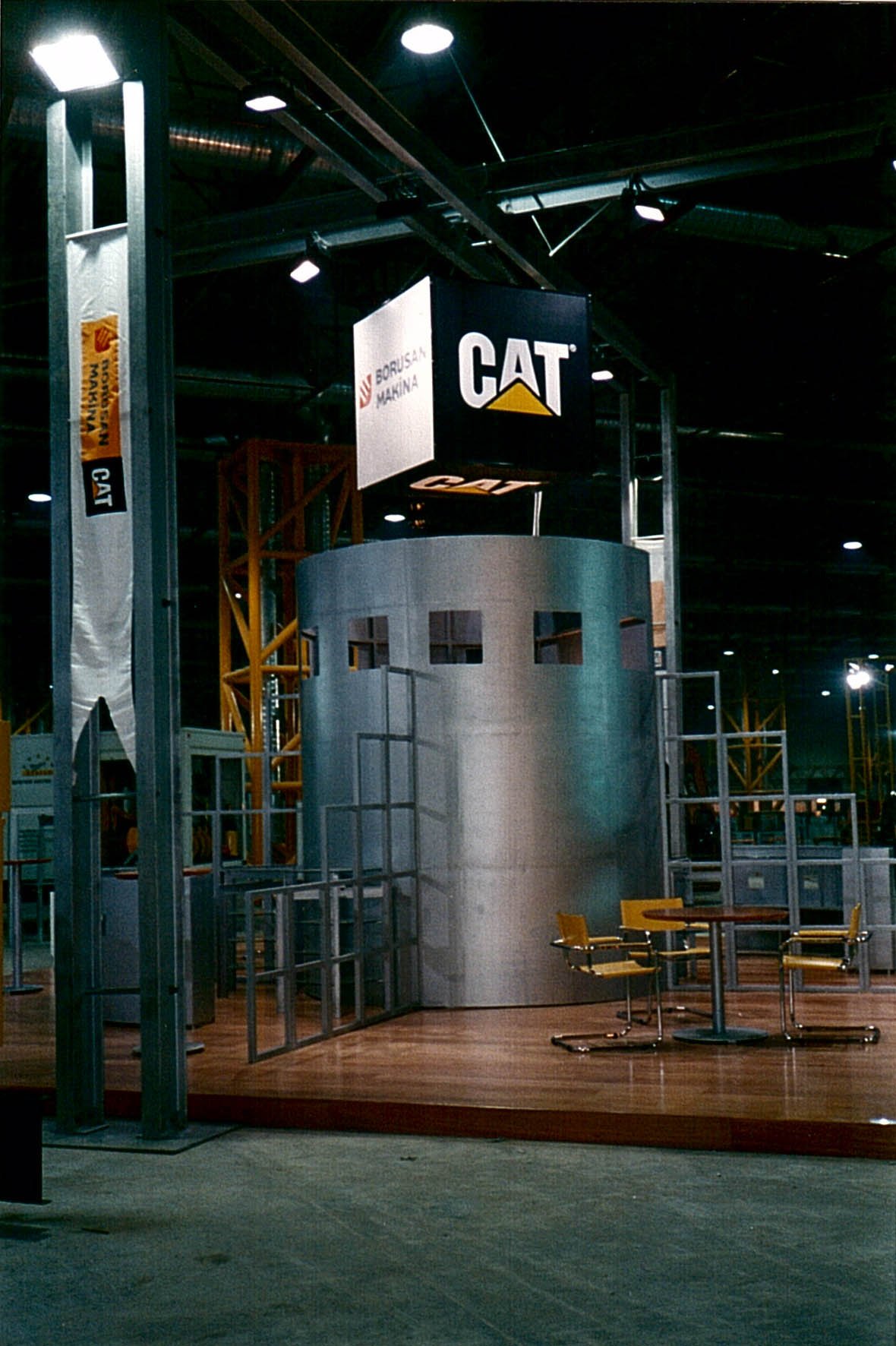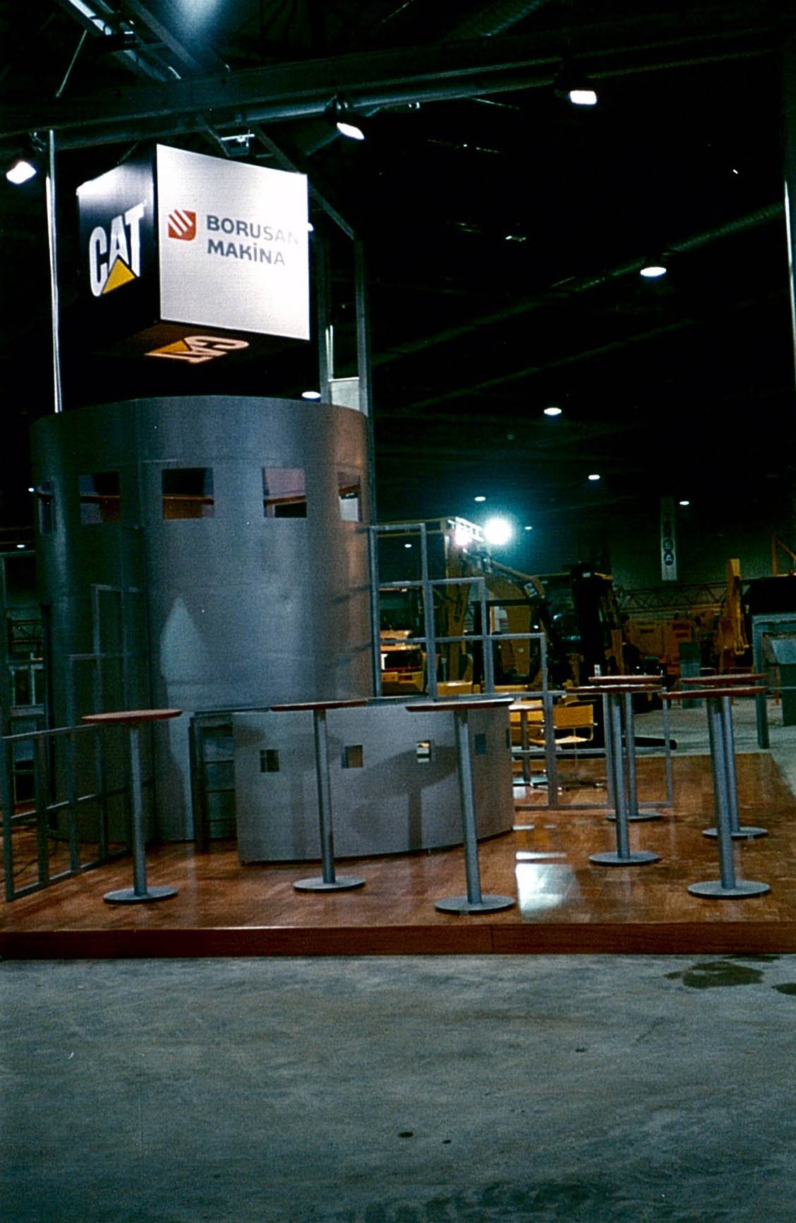 1998 yılında İzmit'te projelendirilen ve uygulanan Borusan İş Makinaları Fuar Standı, ağır sanayi sektörünün dinamizmini ve markanın gücünü sergileme alanına taşıyan devasa bir ticari tasarımdır. Tam 1.500 metrekarelik dev bir ölçekte kurgulanan bu stant, iş makinelerinin anıtsal boyutlarına uyum sağlayacak sağlam ve yüksek tavanlı bir çelik konstrüksiyon altyapısıyla şekillendirilmiştir. Markanın kurumsal kimliğini vurgulayan yüksek sergileme kuleleri, geniş açıklıklar ve güçlü endüstriyel aydınlatma detaylarıyla bu proje, ziyaretçilere markanın sektördeki tartışılmaz ağırlığını hissettiren oldukça iddialı ve akılda kalıcı bir mekansal deneyim sunmaktadır.