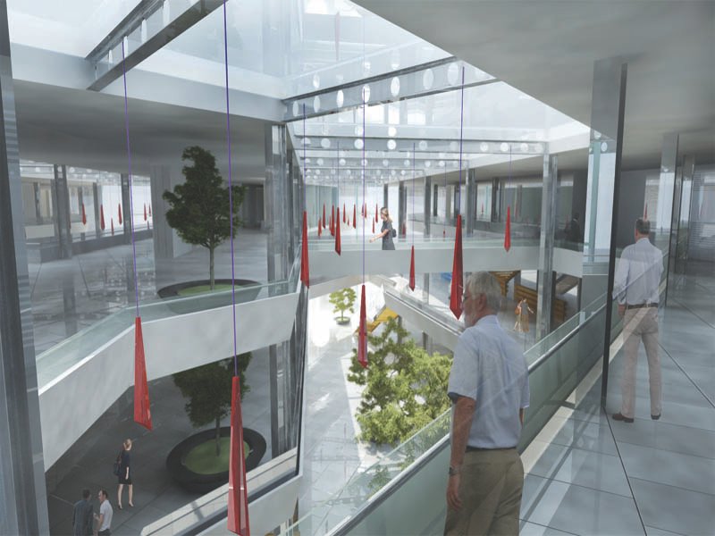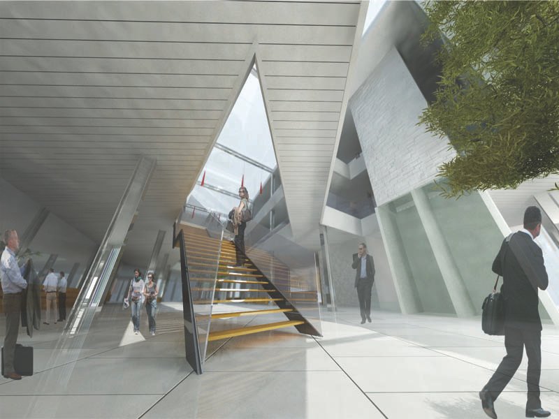 Denizli'nin yönetsel kalbi olarak tasarlanan Hükümet Konağı projesi, klasik devlet yapılarının alışılmış katı formlarını kırarak modern, şeffaf ve davetkar bir mimari dil sunmaktadır. Yaklaşık 38.500 metrekarelik eğimli bir araziye ustalıkla konumlandırılan kompleks, topoğrafyaya uyum sağlayan kademeli terasları ve dinamik kırık hatlara sahip kütleleriyle dikkat çeker. Geniş açık avlular, yaya sirkülasyonunu destekleyen ferah meydanlar ve gün ışığını maksimum seviyede içeri alan cam cepheler, hem idari birimler arası koordinasyonu kolaylaştırmayı hem de vatandaşların kamusal alanla kurduğu bağı güçlendirmeyi hedeflemektedir.