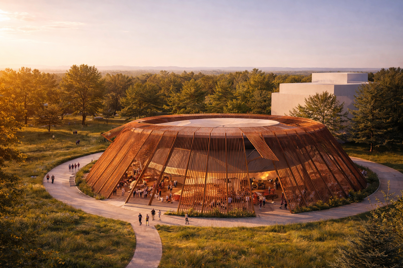 "Doğa ile Bütünleşen, Ahşap ve Camın Zarif Dokunuşuyla Tasarlanmış Kültür Odağı"